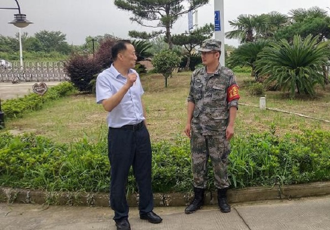 在部隊駐扎地安職院,何族興一行詳細(xì)了解了部隊官兵的駐地環(huán)境、食宿安排等方面情況,并送去換洗衣物、飲用水、防蚊及防暑用品等價值近3萬元的生活物資。