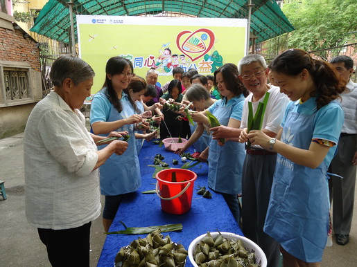 在活動(dòng)現(xiàn)場,義工隊(duì)員們與社區(qū)工作人員一起,邊包愛心粽,邊與圍繞在周圍的社區(qū)老人們拉家?!,F(xiàn)場笑聲不斷、其樂融融,充滿溫情暖意?;顒?dòng)中,所用的包粽食材均采用低碳健康食材,旨在宣揚(yáng)傳統(tǒng)裹粽文化的同時(shí),積極推廣低碳的生活理念。300余只粽子在大家的努力下,兩個(gè)小時(shí)就全部包裹完畢。義工隊(duì)員們挨個(gè)將現(xiàn)場包好的愛心粽以及帶來的綠豆糕、鴨蛋等節(jié)日禮品贈(zèng)與社區(qū)孤寡老人、獨(dú)居長者等有需要的社區(qū)弱勢(shì)群體手上,為他們送去安慶港華燃?xì)獾馁N心和關(guān)愛,送去節(jié)日的慰問和濃濃祝福。