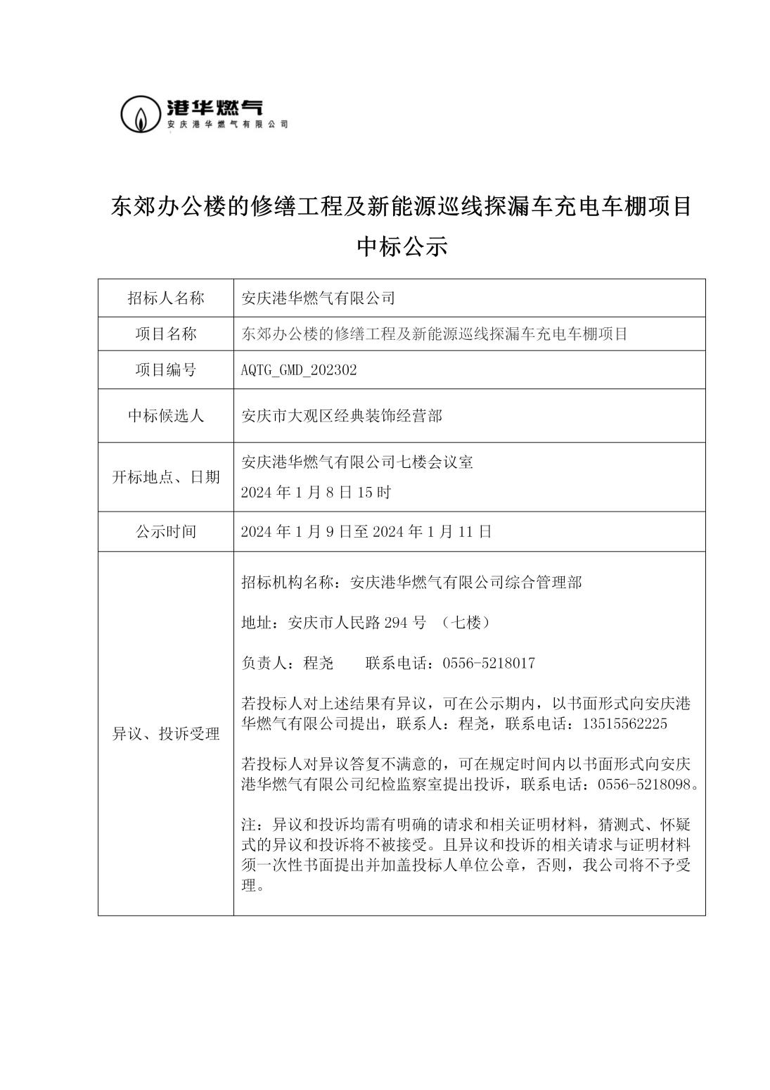 東郊辦公樓的修繕工程及新能源巡線探漏車充電車棚項目中標(biāo)公示