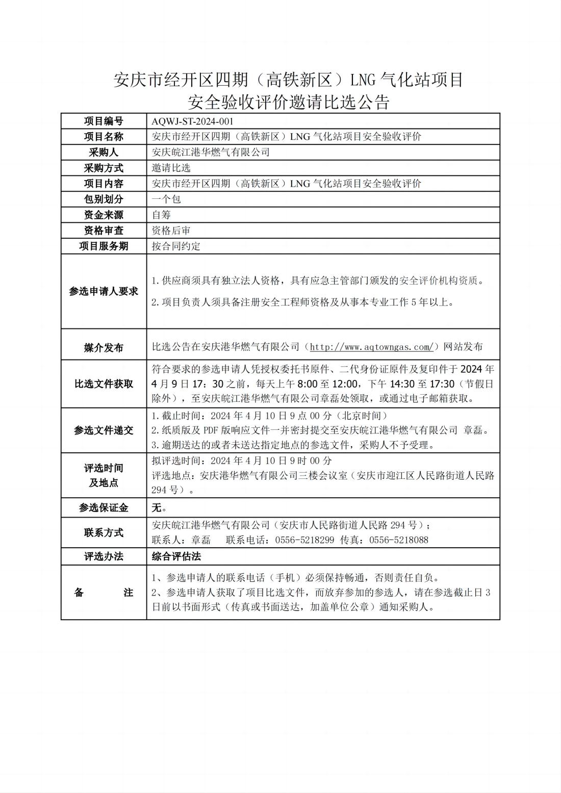 安慶市經(jīng)開區(qū)四期(高鐵新區(qū))LNG 氣化站項(xiàng)目安全驗(yàn)收評價(jià)邀請比選公告