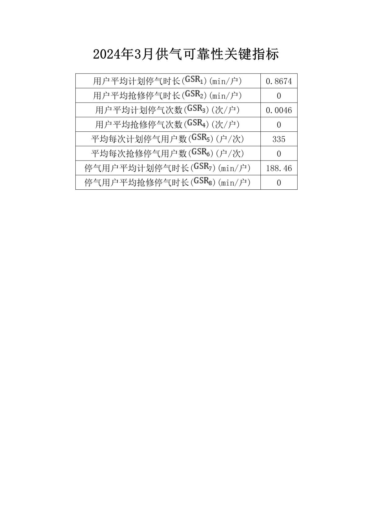 2024年3月供氣可靠性關(guān)鍵指標