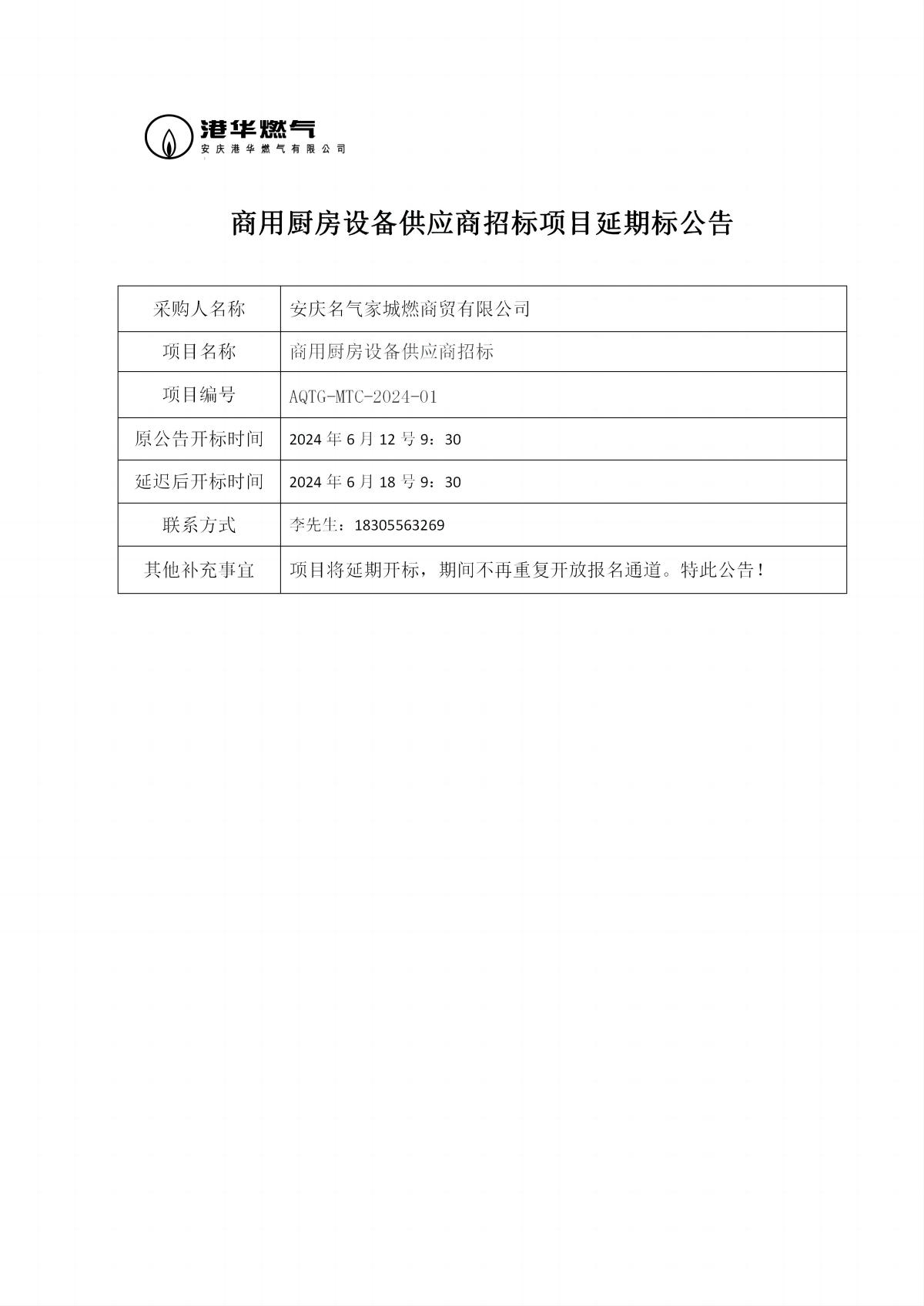商用廚房設(shè)備供應(yīng)商招標項目延期標公告