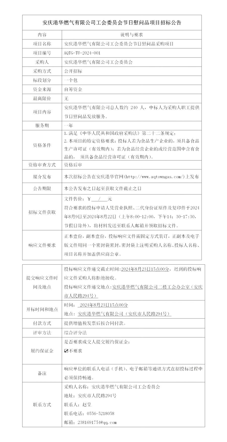 安慶港華燃?xì)庥邢薰竟?huì)委員會(huì)節(jié)日慰問(wèn)品項(xiàng)目招標(biāo)公告
